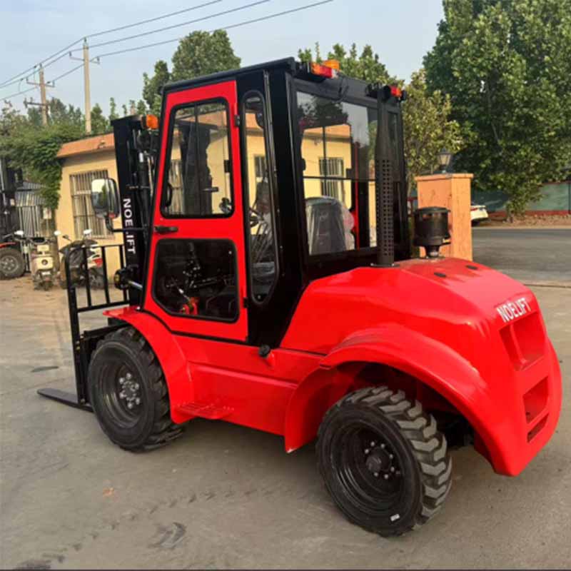 Rough terrain forklifts utilize large, widened, and deep-tread tires, which not only significantly enhance grip and shock absorption, but also effectively improve the vehicle's adaptability in a variety of harsh terrains, including mud, slopes, and slippery conditions. Furthermore, their ample ground clearance and all-wheel drive systems give these all-terrain forklift trucks exceptional maneuverability and obstacle-crossing capabilities, truly achieving "all-terrain" operational performance.